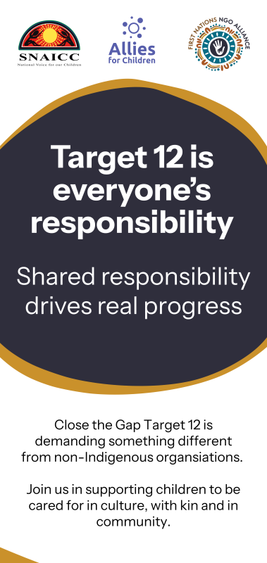 A parliamentary briefing, co-convened by SNAICC, the peak for Aboriginal and Torres Strait Islander children, Allies for Children, and the First Nations NGO Alliance will be held on 26 March 2026 to share alternative pathways for progress on Closing the Gap Target 12.
